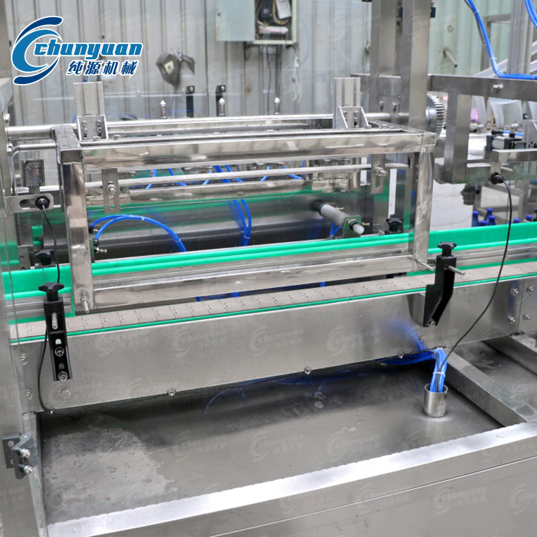 3-10L大瓶水灌裝設(shè)備灌裝速度快、液面控制穩(wěn)。采用鏈道進(jìn)瓶、沖洗、卡瓶口灌裝、封蓋、不受瓶子高矮限制,只要瓶口、瓶頸、瓶蓋尺寸相同一致,隨意更換瓶型,更換瓶型同時需更換所有拔輪導(dǎo)板即可,擰蓋頭采用磁力扭矩式,實(shí)現(xiàn)抓蓋、擰蓋功能。