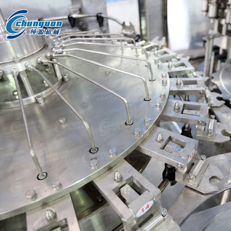 純源機(jī)械生產(chǎn)供應(yīng)的全自動(dòng)果汁飲料灌裝設(shè)備集沖洗、灌裝、封蓋三個(gè)功能組合在一個(gè)機(jī)體上,全過程實(shí)現(xiàn)自動(dòng)化,適用于耐高溫聚脂瓶灌裝果汁飲料、果茶飲料,果汁熱灌裝機(jī)選用優(yōu)質(zhì)的SUS304材料制作,主關(guān)件部件采用數(shù)控機(jī)床精密加工,果汁飲料灌裝機(jī)采用先進(jìn)光電檢測各部件的運(yùn)行狀況,具有無瓶不灌裝,無瓶不送蓋,自動(dòng)化程度高,簡易的人機(jī)界面的操作顯示屏。