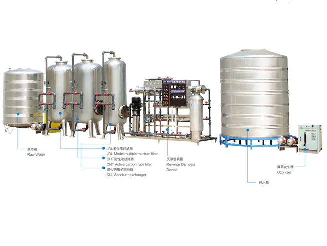 純?cè)礄C(jī)械的水處理設(shè)備制造適用于純凈水、礦泉水、飲料產(chǎn)品水及工藝水的各類(lèi)水處理設(shè)備。主要包括:預(yù)處理系統(tǒng)(石英砂過(guò)濾器、活性炭過(guò)濾器、離子交換器、微孔過(guò)濾器),膜分離系統(tǒng)(中空纖維超濾、納濾器、反滲透主機(jī)),滅菌設(shè)備(紫外線(xiàn)設(shè)備、臭氧發(fā)生器)及鈦芯棒過(guò)濾器等。