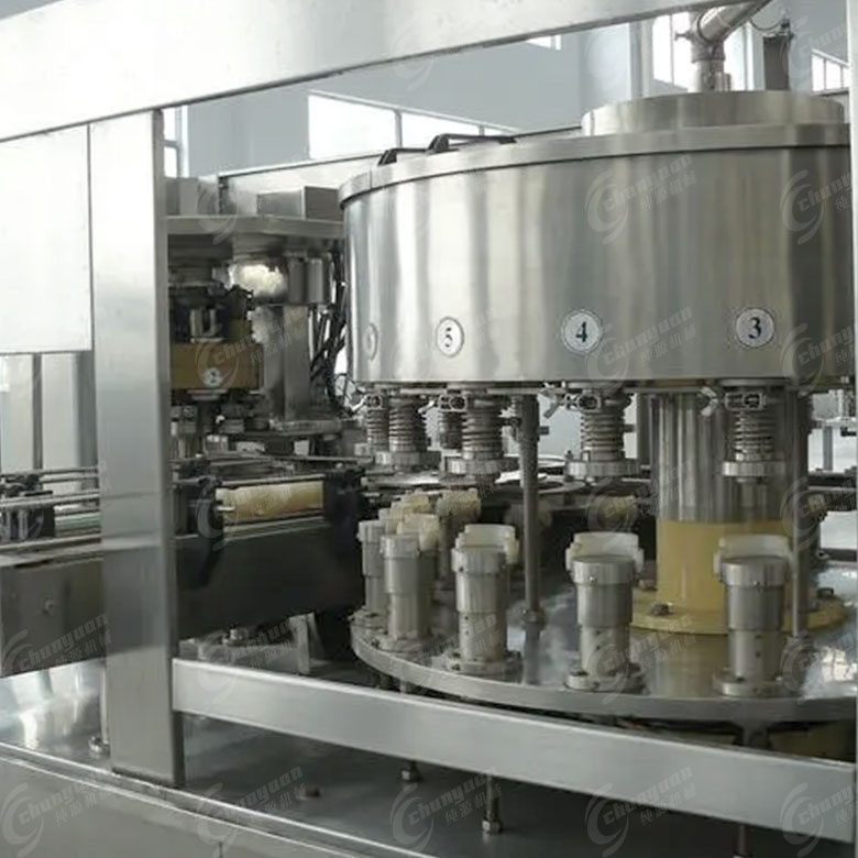 飲料灌裝系統(tǒng):灌裝閥打開,通過精確控制,將含氣飲料注入到易拉罐中。同時,飲料灌裝機器通過氣壓控制系統(tǒng)向罐內(nèi)注入適量氣體,以保持罐內(nèi)外壓力平衡,確保飲料能夠順利灌裝并防止氣泡溢出,以順利、準(zhǔn)確地完成灌裝。
